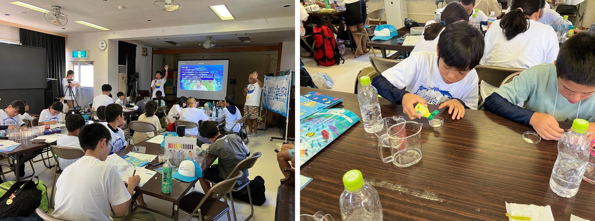 シュノーケリングや夜の生き物観察など、柏島の豊かな海でのさまざまな体験を通じて、これからの日本の未来を担う小学生たちに、「今、高知の海で起きている変化」を実感し、美しい海を守るために何をするべきかを学び、考えてもらった2日間。自分の五感で感じた海の美しさや大切さを学習シートにまとめ、発表し合うことによって自らの考えを共有し合い、さらに学びを深めることができました。